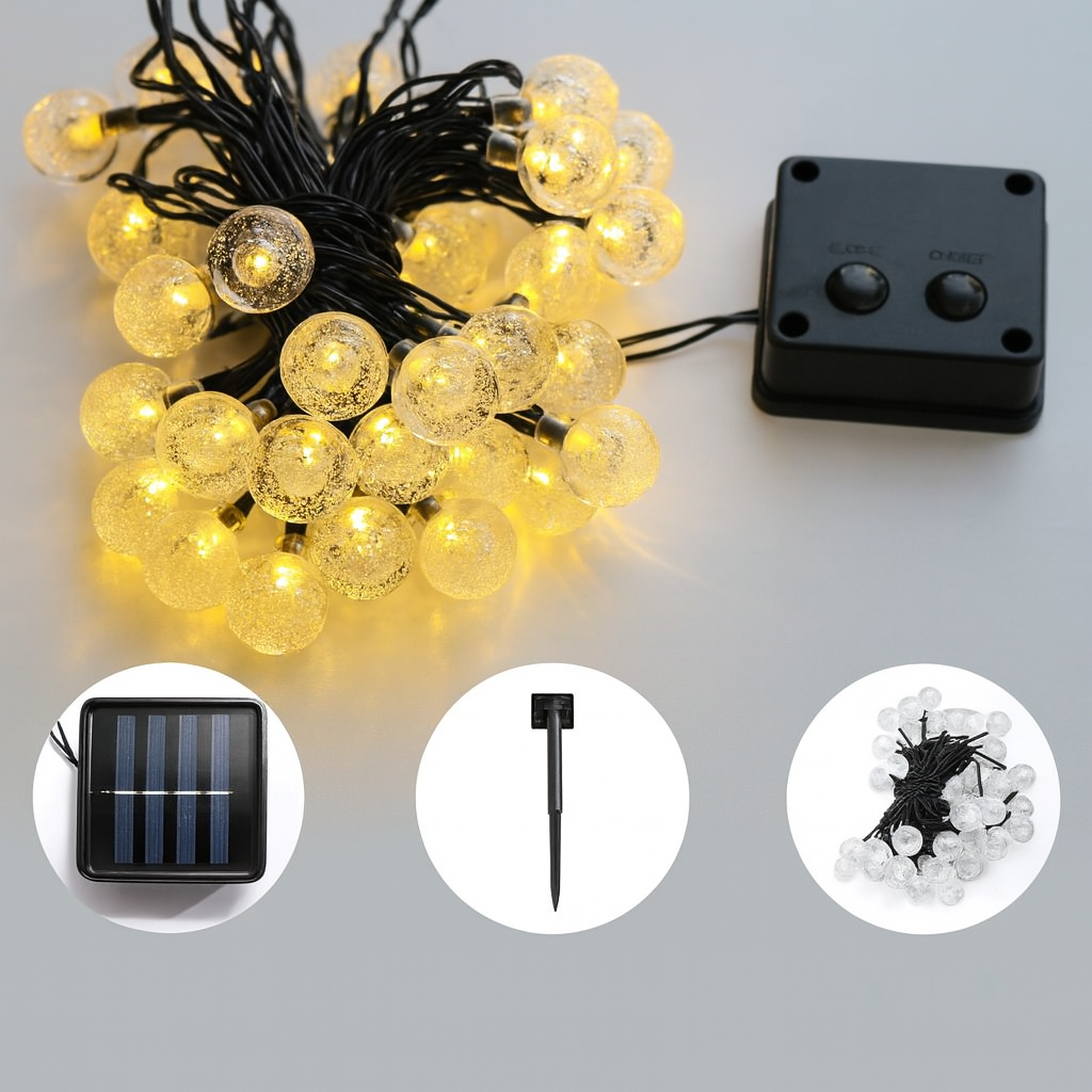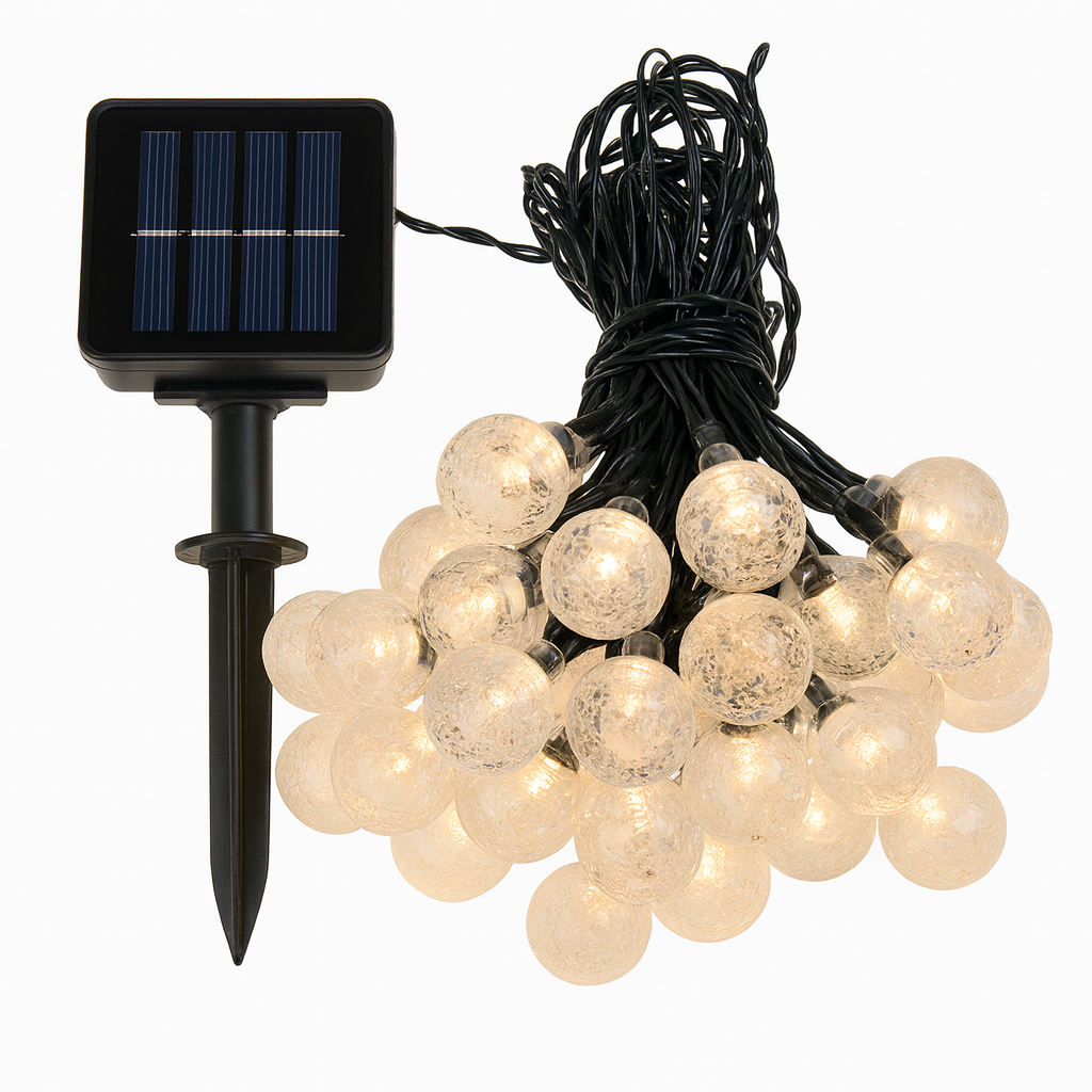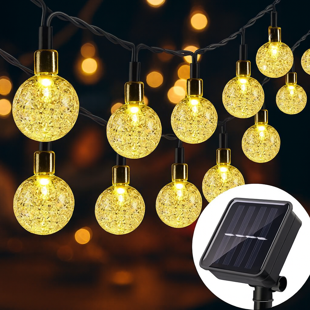 Με 30 κρυστάλλινες μπίλιες LED σε 6,5 μέτρα μήκος, φωτίζει αυτόματα κάθε βράδυ, μετατρέποντας τον κήπο, το μπαλκόνι ή το δέντρο σου σε ένα παραμυθένιο σκηνικό... εντελώς δωρεάν! 🎄💫
