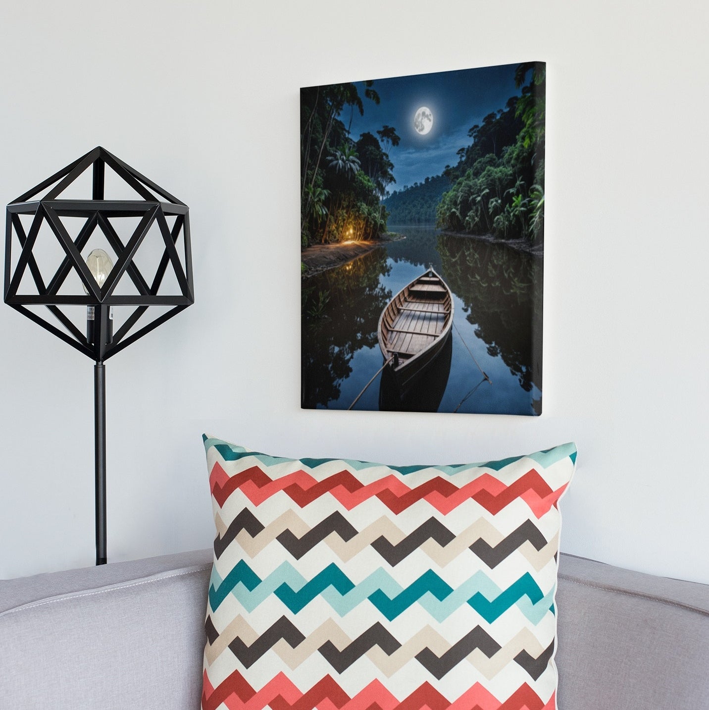 Ο Πίνακας απεικονίζει ένα ειδυλλιακό τοπίο με μια βάρκα στο φεγγαρόφωτο!